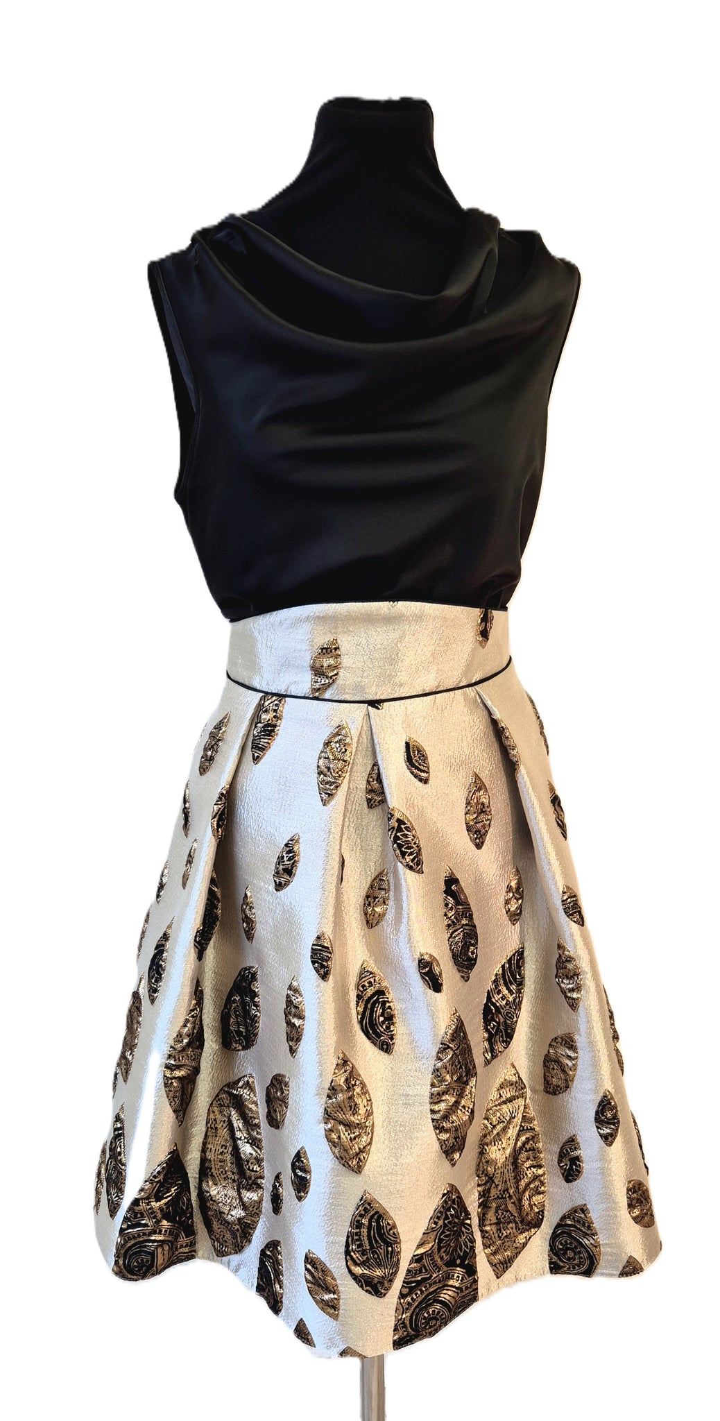 Kjol till fest Design Moncho Heredia med reliefbubbliga löv