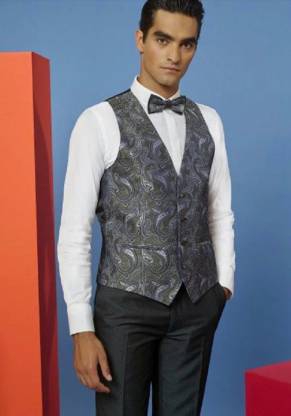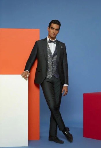 Kavaj, byxa, väst, fluga och näsduk